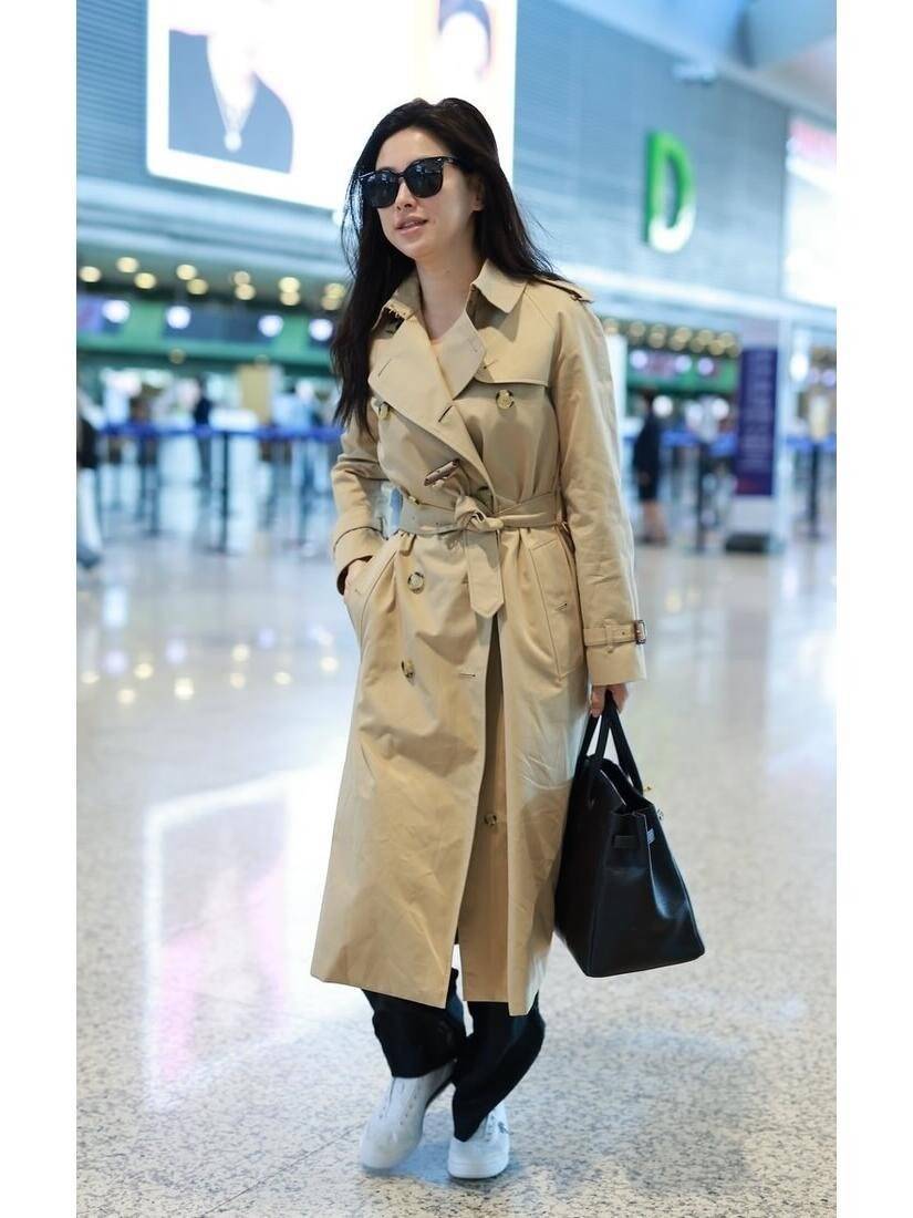 但朱珠这套“风衣+阔腿裤+小白鞋”就不一样了,简直是为秋天量身定做的懒人高级公式。首先说风衣,朱珠选的是长度到膝盖下、有点垂感的款式,不是硬邦邦的工装风,也不是软塌塌没型的料子,风一吹的时候,衣摆轻轻飘起来,走路都带气场。颜色也特别讨巧,不是死板的黑色,而是卡其色这种经典大地色,衬得皮肤特别亮,黄皮姐妹穿也完全没问题。